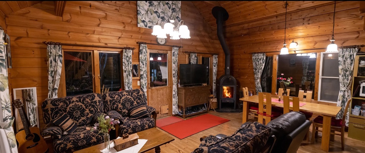 宿泊施設は、まるでおとぎ話に登場するようなフィンランドログハウスが母屋となり、リビングには薪の暖炉や大きなソファがあり、非日常の温もりを感じさせてくれます。