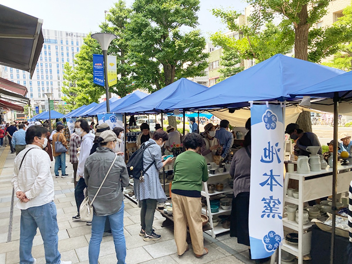 約50の窯元が出店し、個性豊かな作品がずらりと並ぶテント市が大きな見どころとなっています。