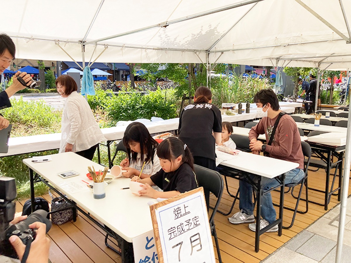 そして、砥部焼のテント市だけでなく、絵付け体験コーナーも設けられています。