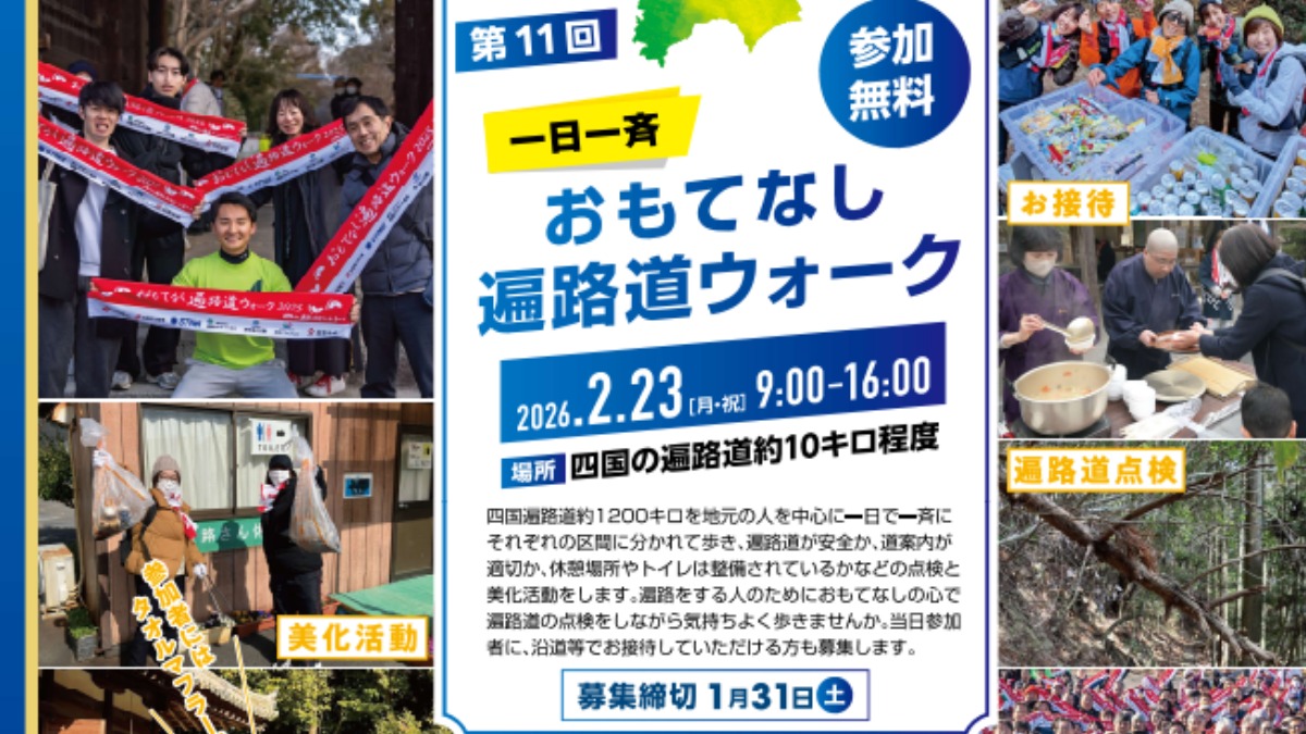 【~1/31】2/23(月・祝)開催の「おもてなし遍路道ウォーク」参加者日集中!