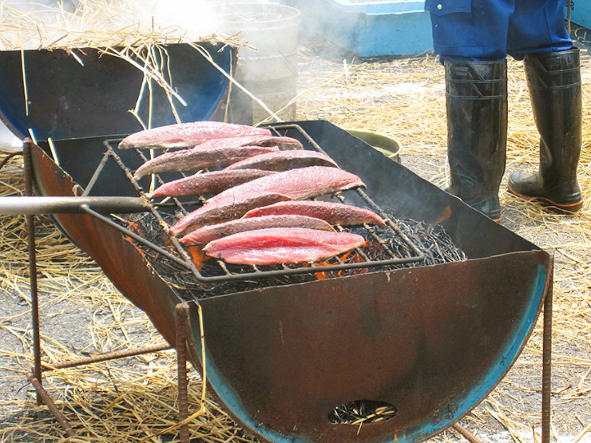 たたきのみならず、同じように藁焼きでじっくり火を通したかつおの“節”も、このイベントの人気グルメのひとつです。