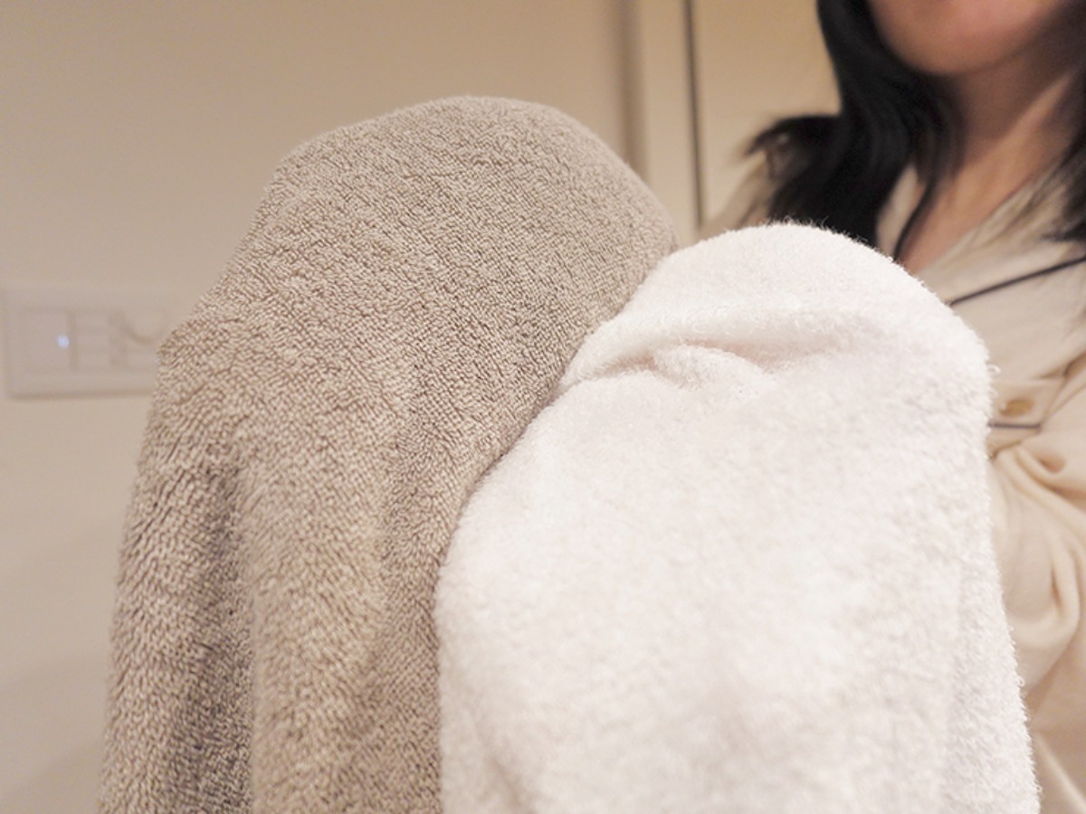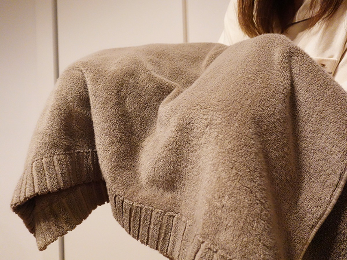元々タオルのボリュームはあったのですが、乾燥機にかけるとさらにふんわり羽毛のように軽やかでしっとりした肌触りで、ずっと触れていたくなる気持ちよさです。
