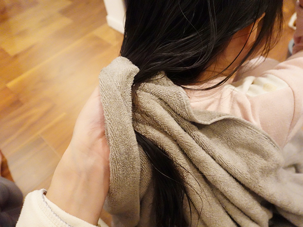 でも吸水性はよくて、髪が長くても水分を吸ってくれます。