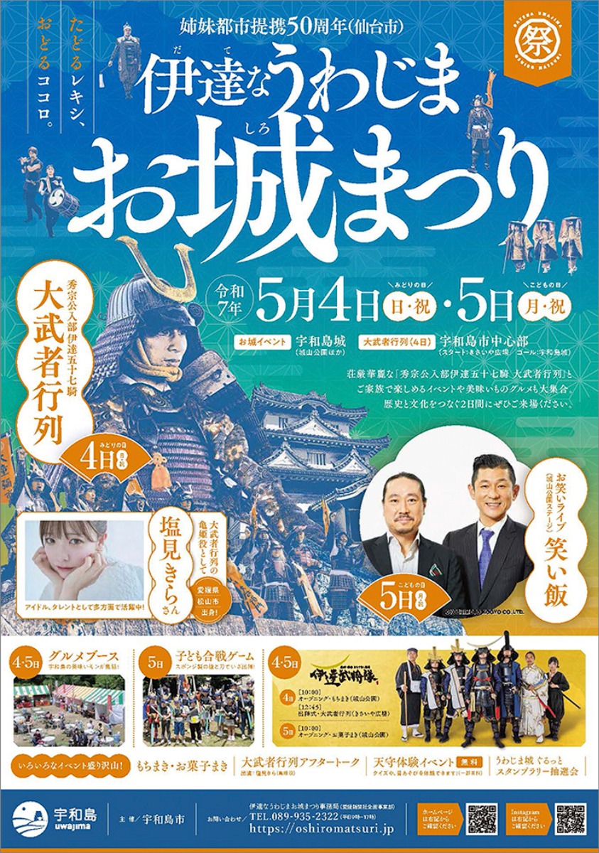 また、今年は宇和島市と仙台市の姉妹都市提携50周年を記念して、仙台から『奥州・仙台 おもてなし集団 伊達武将隊』もやってきて、一緒にイベントを盛り上げてくれます!