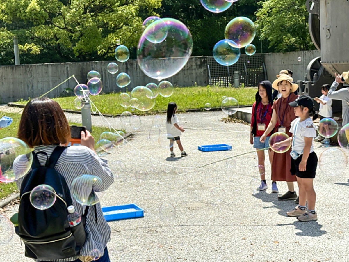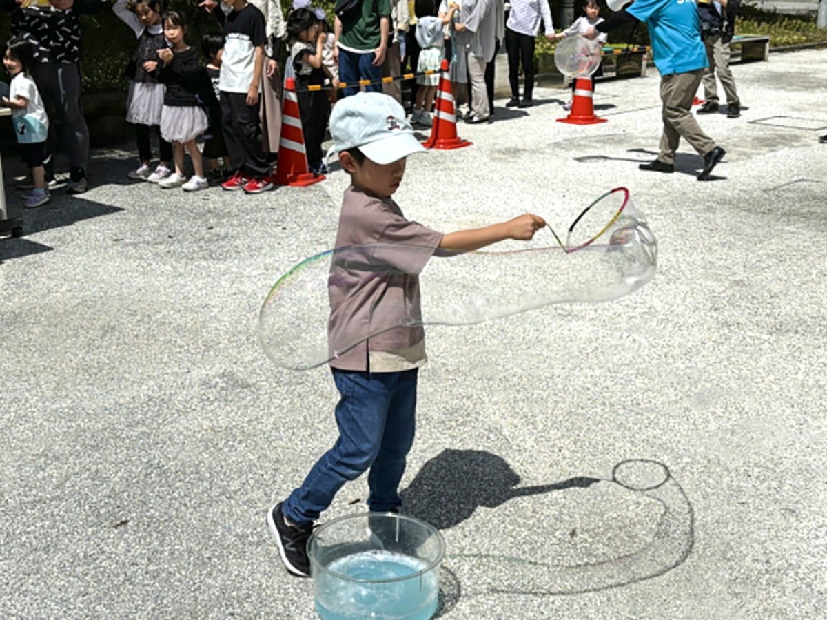 大きなシャボン玉が作られる瞬間は、子どもたちだけでなく大人も夢中になること間違いなしです。