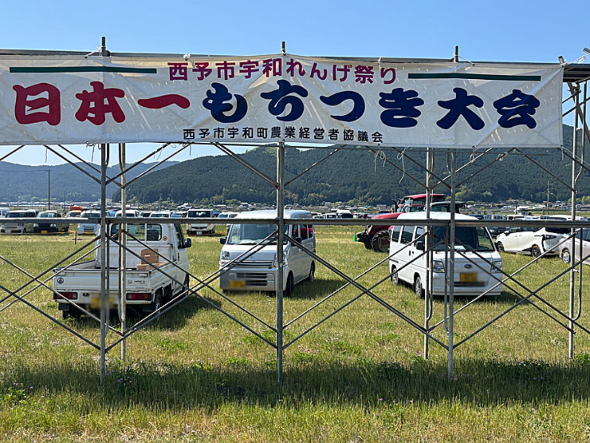 知らなかったら、気になる『日本一のもちつき大会』の横断幕。
