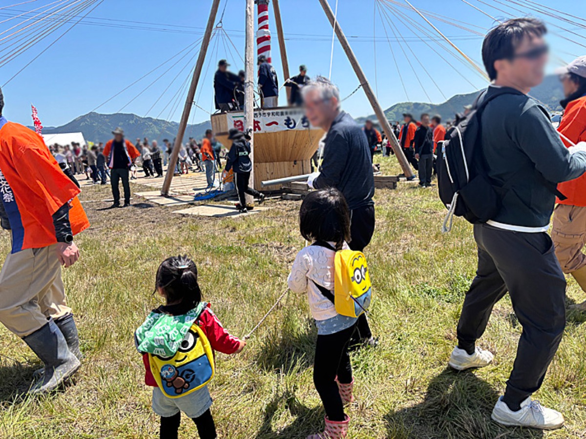 子どもたち、紐の勢いにビックリ!!後ろの方にいても、次女は終始、紐に振り回されっぱなしなので最終、紐がにぎれなくなって悔しがっていました。笑