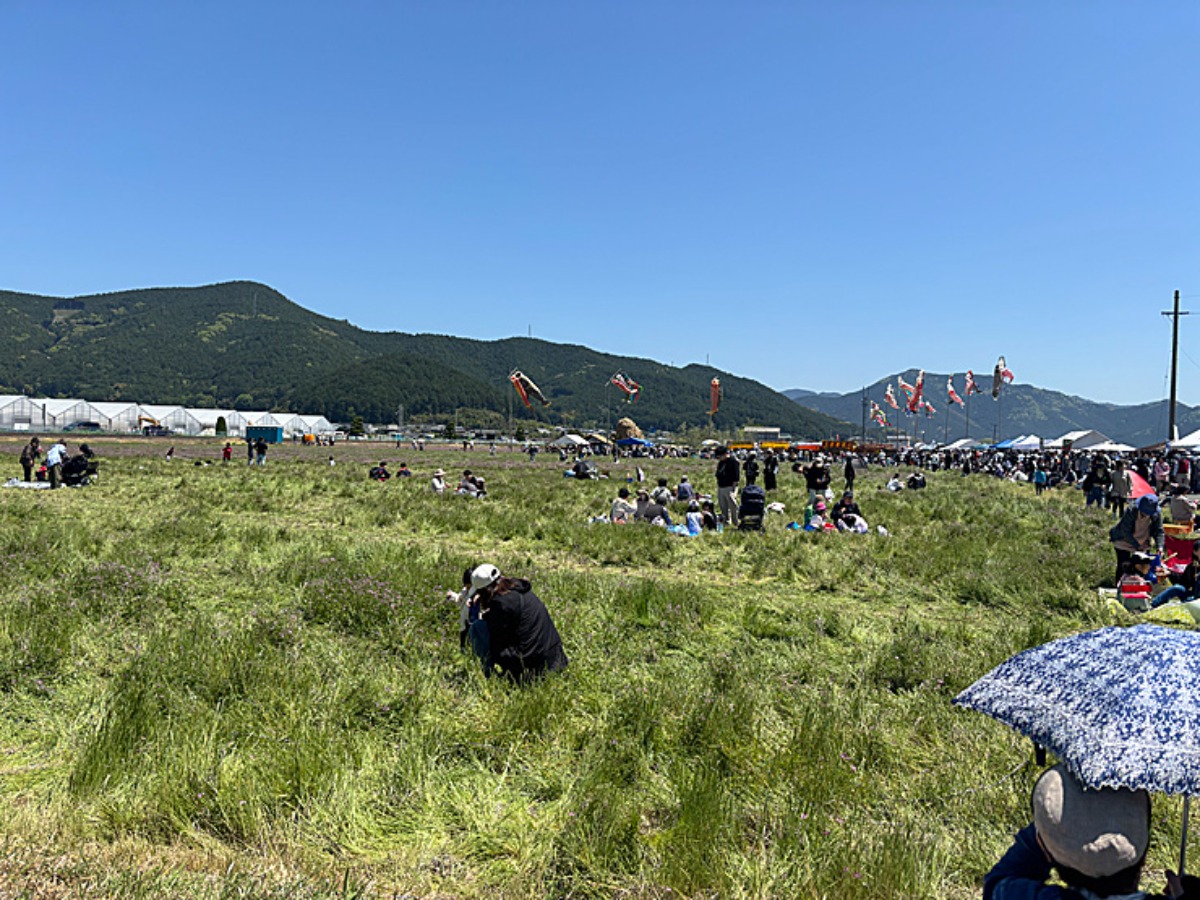 れんげ祭りは、レジャーシートを持参されている方もたくさん。