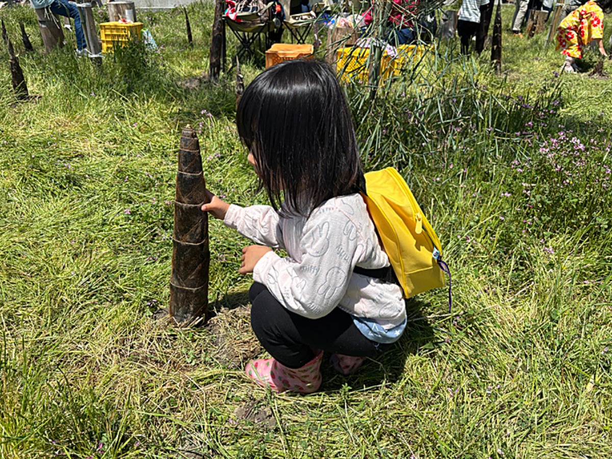 岩木ほのぼの広場では、にょきにょき、タケノコ発見で!! 食べたことあっても生えてるの見たことなかった娘たち。