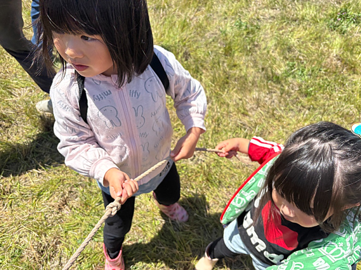 小さな子どもたちは後ろ側にいないと紐の勢いに身体もっていかれそうでした。