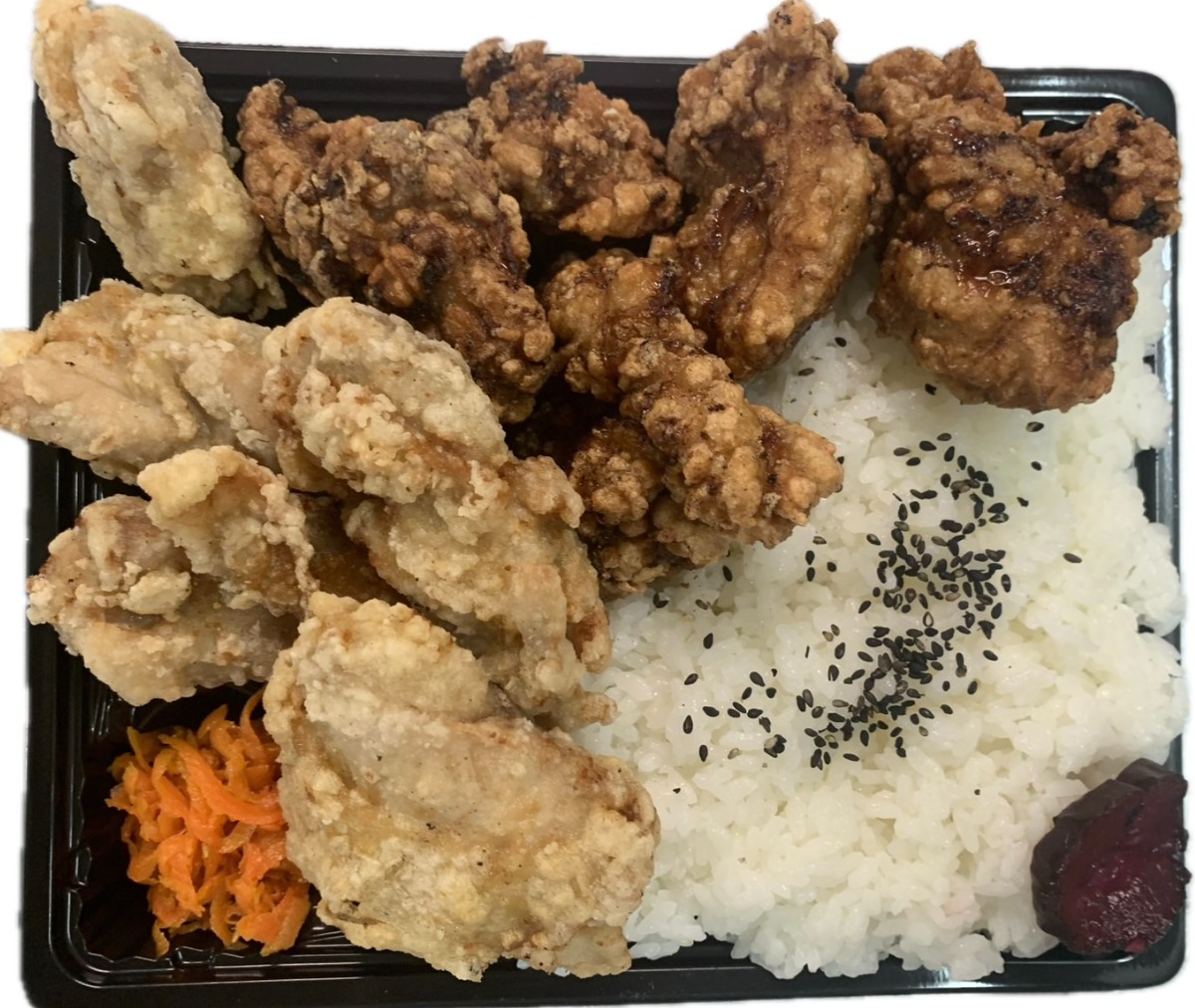 中でも「あいもり弁当」は、はれのち弁当独自の塩と醤油を使った2種類の唐揚げを一度に楽しめるメニューとして人気!もちろん、通常サイズもありますよ。