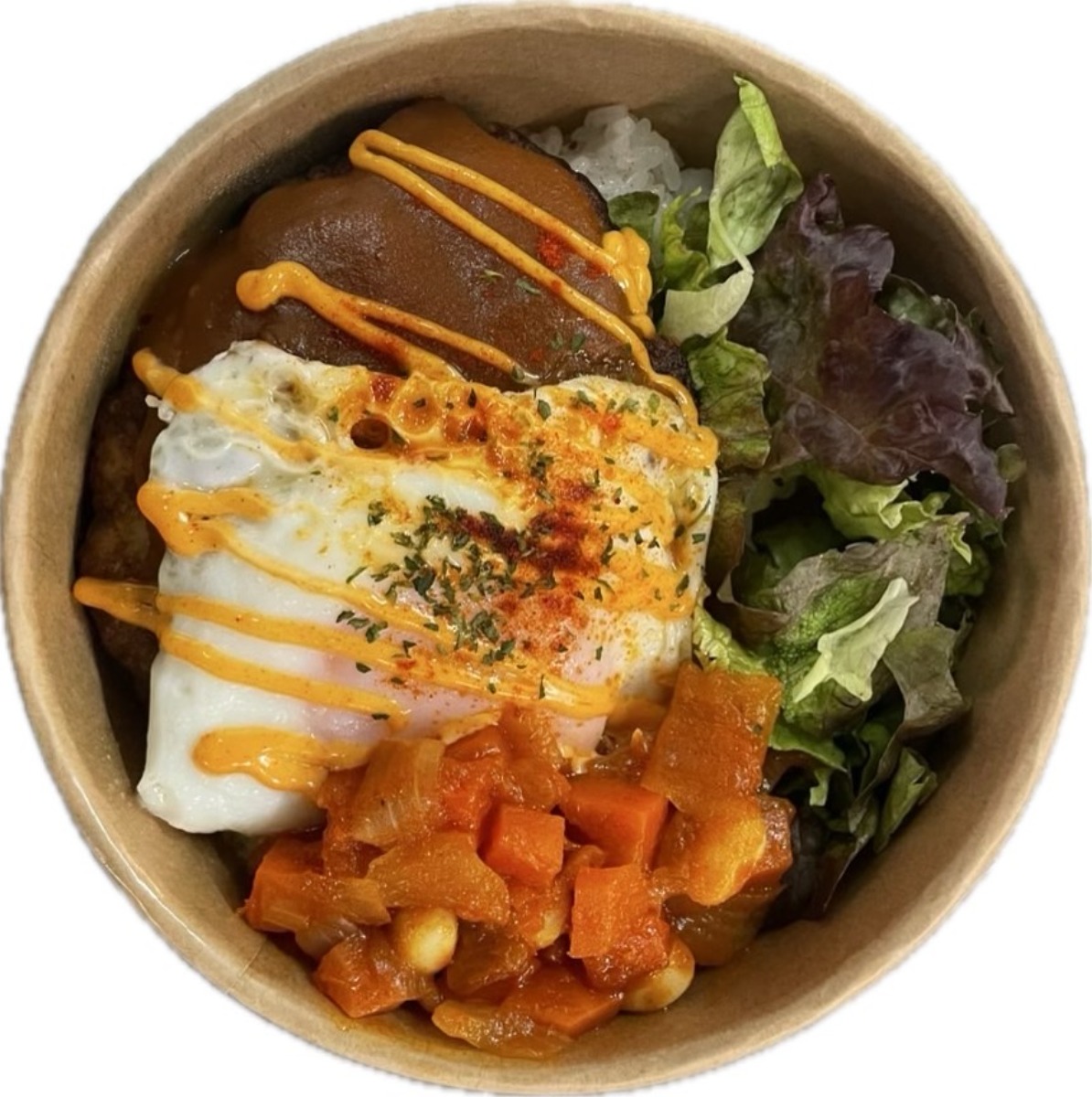 注文を受けてからできたてで提供される「デミロコ丼」は、ジューシーなハンバーグの上にふわとろ玉子をのせた、特に女性に人気のメニューです。量も多すぎず、ちょうどいいサイズ感が好評の理由です。見た目もかわいらしく、ランチにもぴったり!