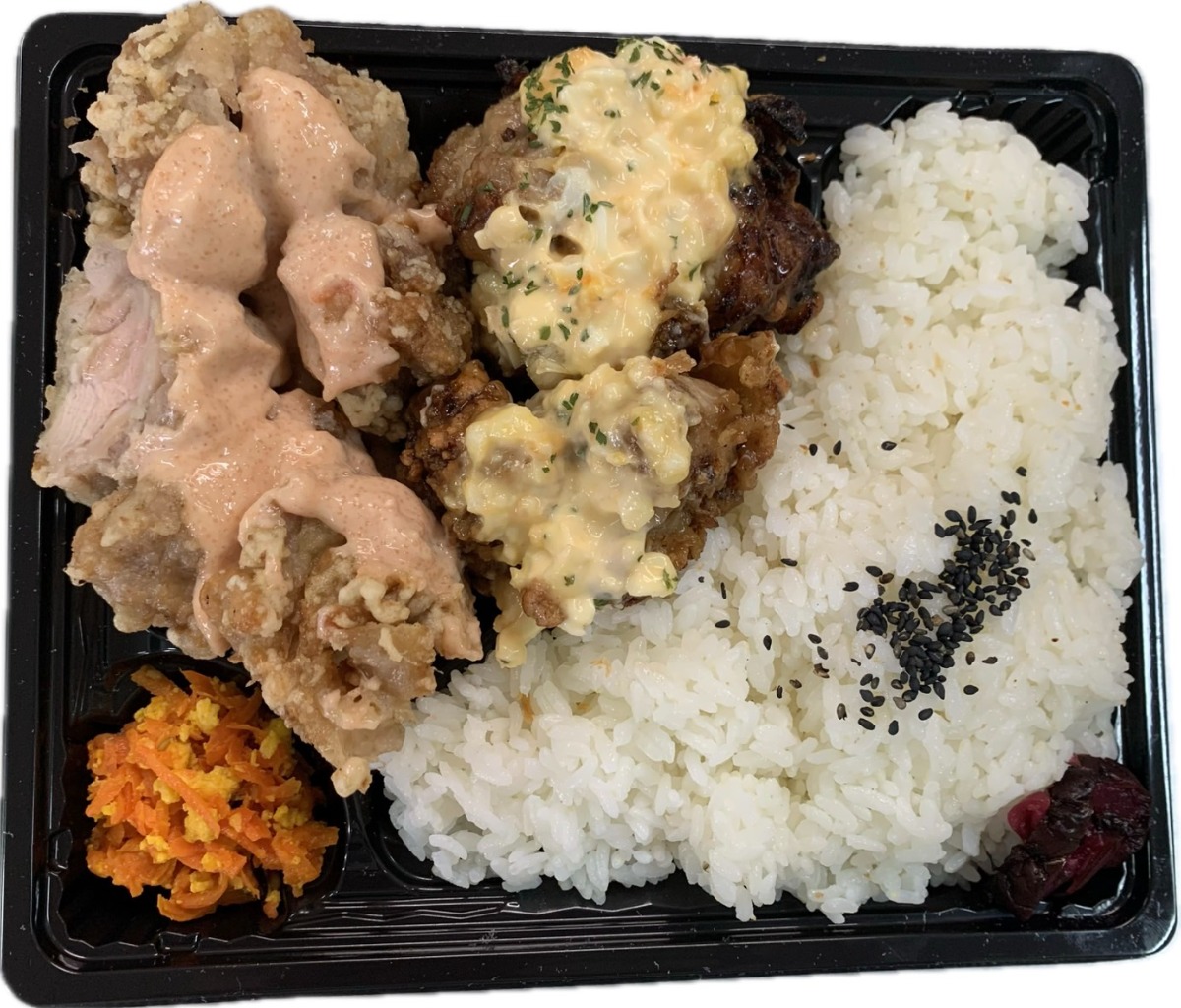 唐揚げ弁当の中でもおすすめなのは"W"シリーズ。6種類の中からお好きな2種類の味を堪能できるシリーズです。「一つに絞らず色々な味を楽しんでほしい」といった店長さん自身の想いが反映されている人気のお弁当ですよ。