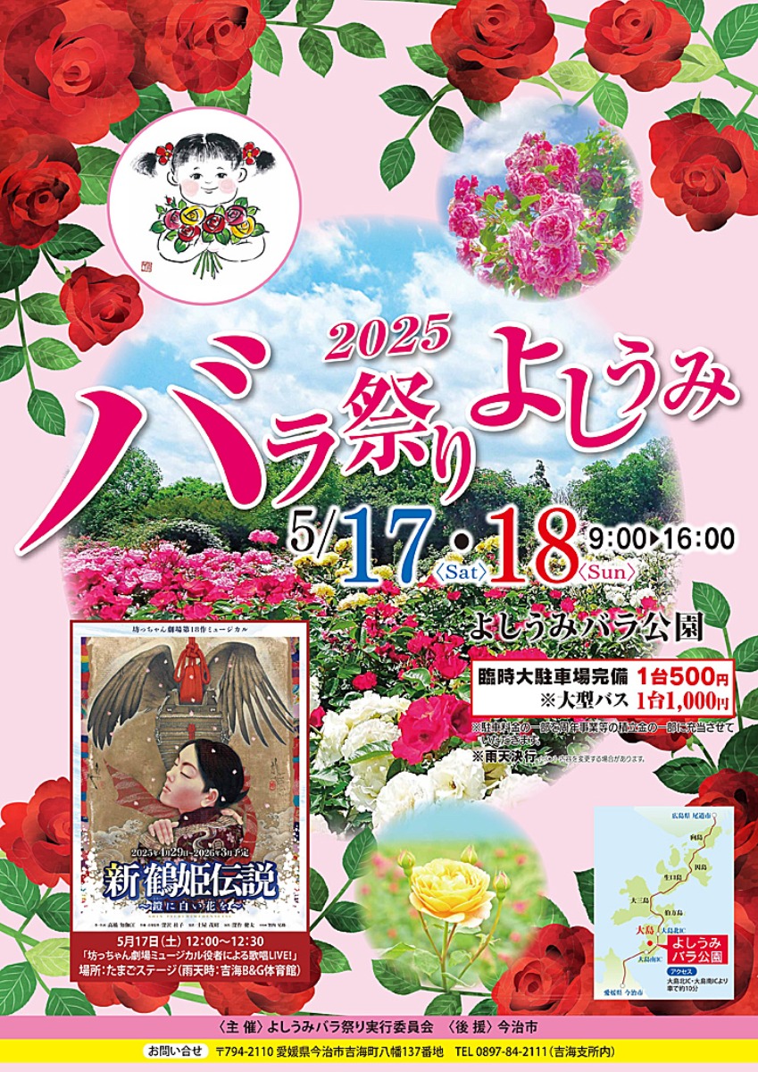愛媛県今治市の「よしうみバラ公園」で、2025年5月17日と18日に開催される「バラ祭りよしうみ2025」は、初夏の訪れを感じるイベントです。