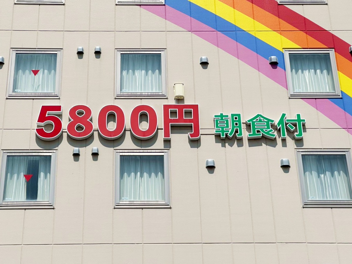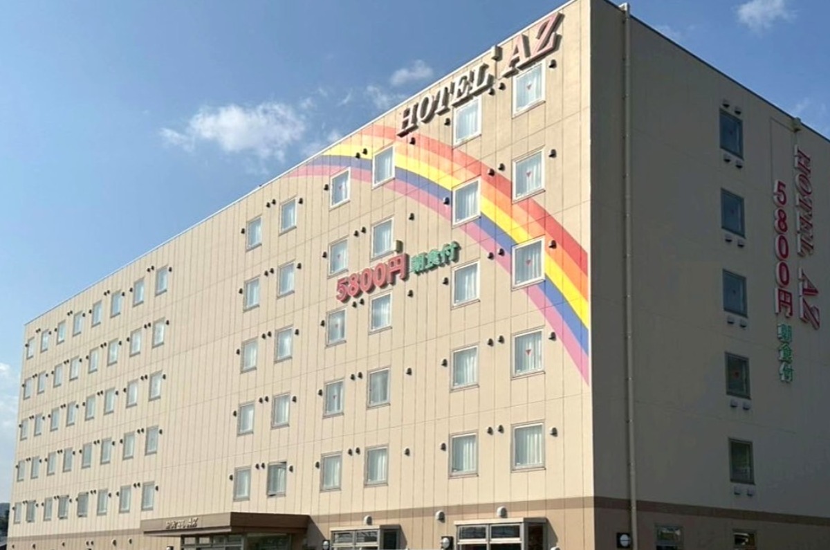 外壁に掲げられた大きな虹のマークでおなじみの「HOTEL AZ」。