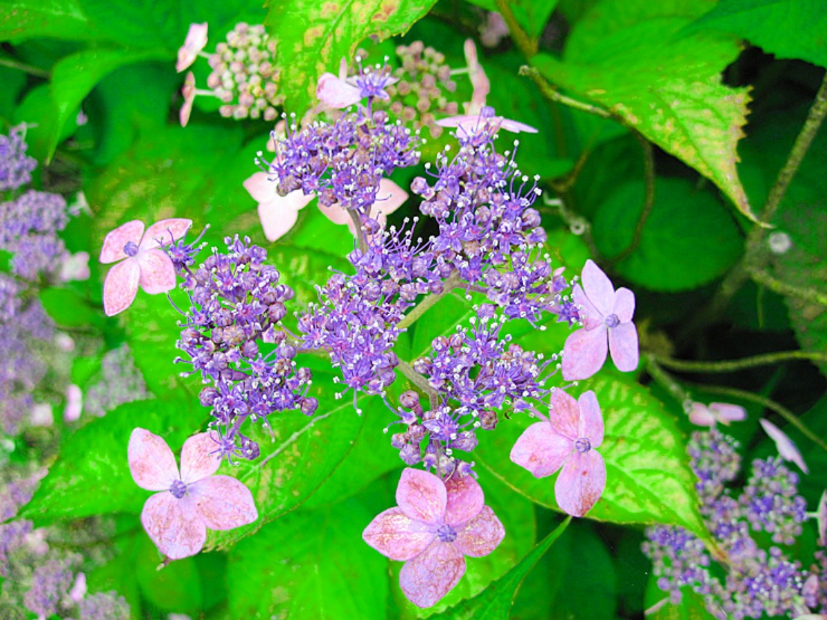 ウズアジサイや西洋アジサイ、ガクアジサイなど、多様な品種が訪れる人を楽しませてくれます。