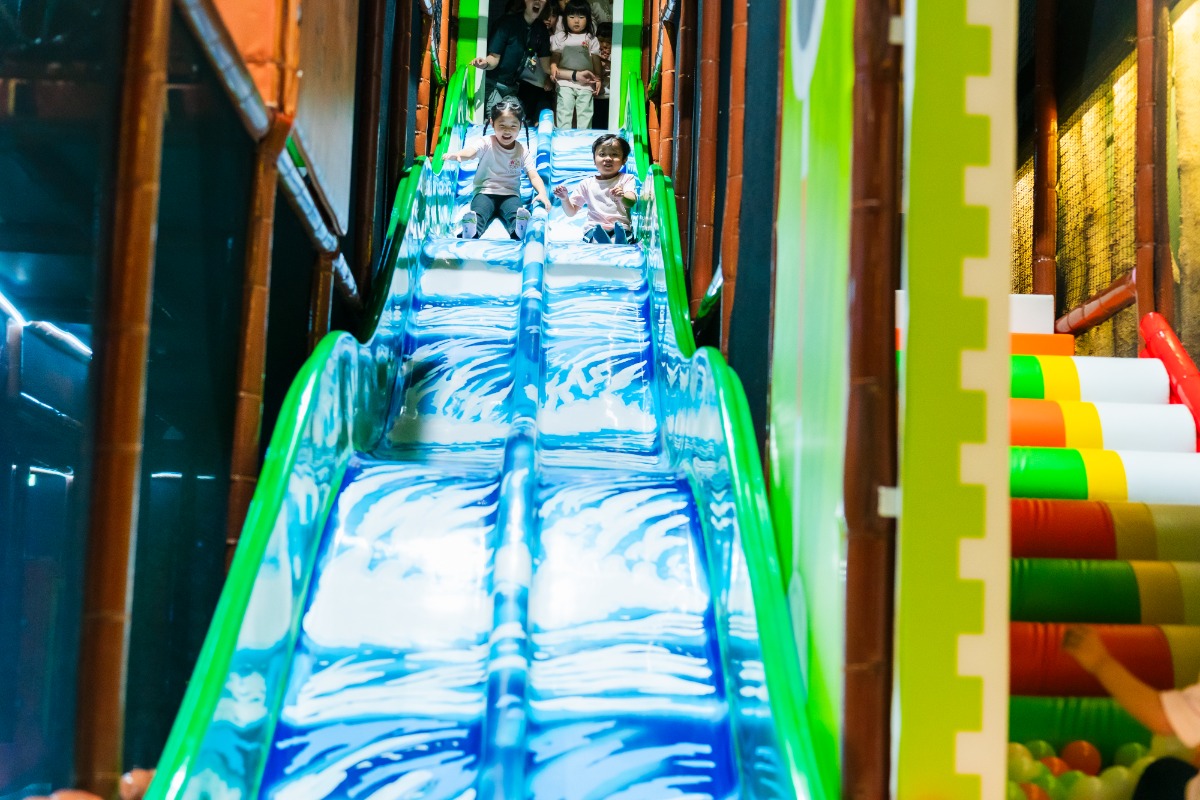 「KIT PLAY」開店時より要望の高かった巨大滑り台を設置しました。滝をイメージして作られており、スピードのあるすべり台に子どもたちも大喜び!