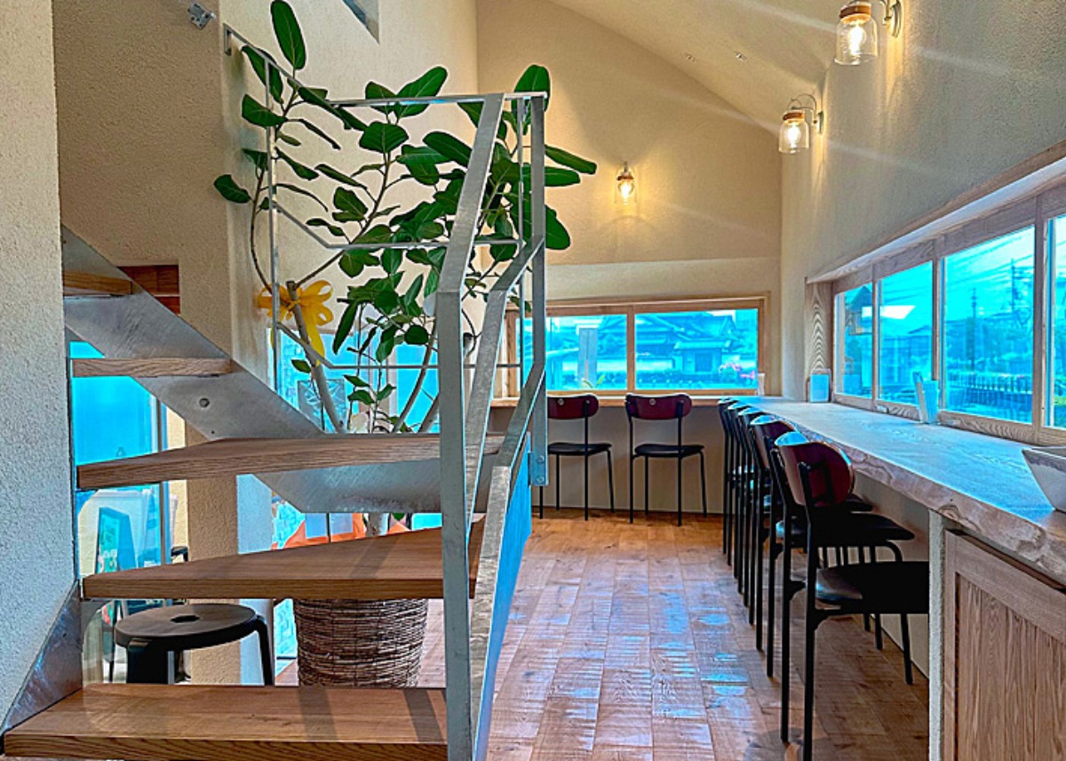 2階のカウンター席からは、窓越しに明るい景色が広がり開放感抜群。