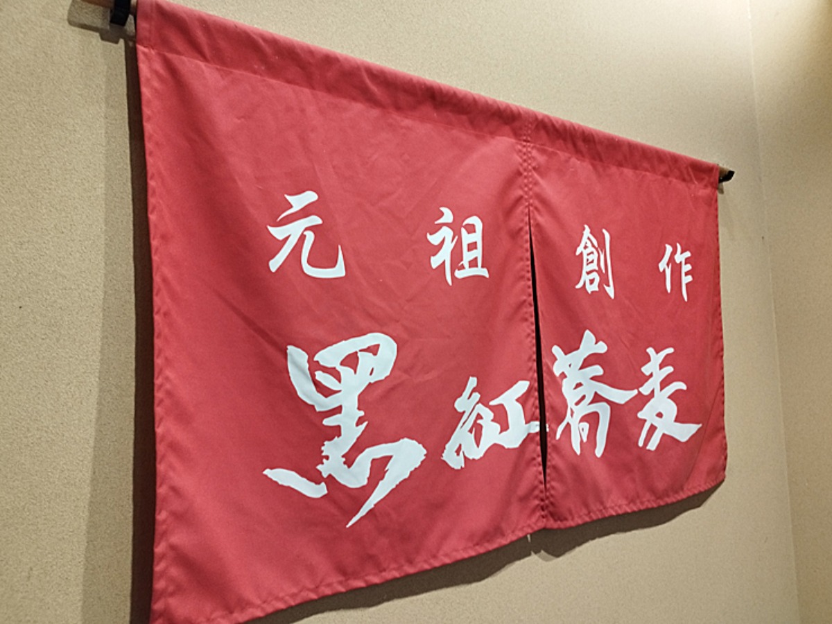 「創作!!黑紅そば」ののぼりが視界に飛び込んできました。本当に松山市駅前から徒歩1分足らずで店舗に辿り着けました。
