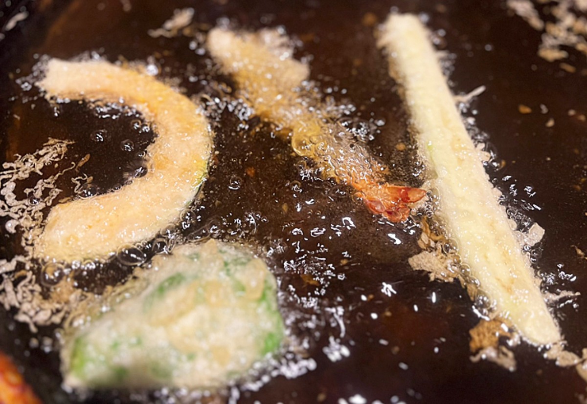 天ぷらも特別に目の前で撮影させていただきました。油の跳ねる景気の良い「ジュワァアア」という音に心が躍ります。