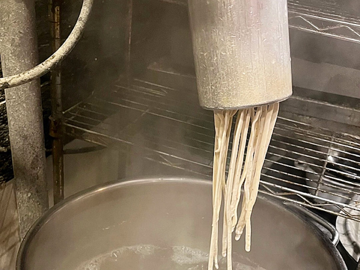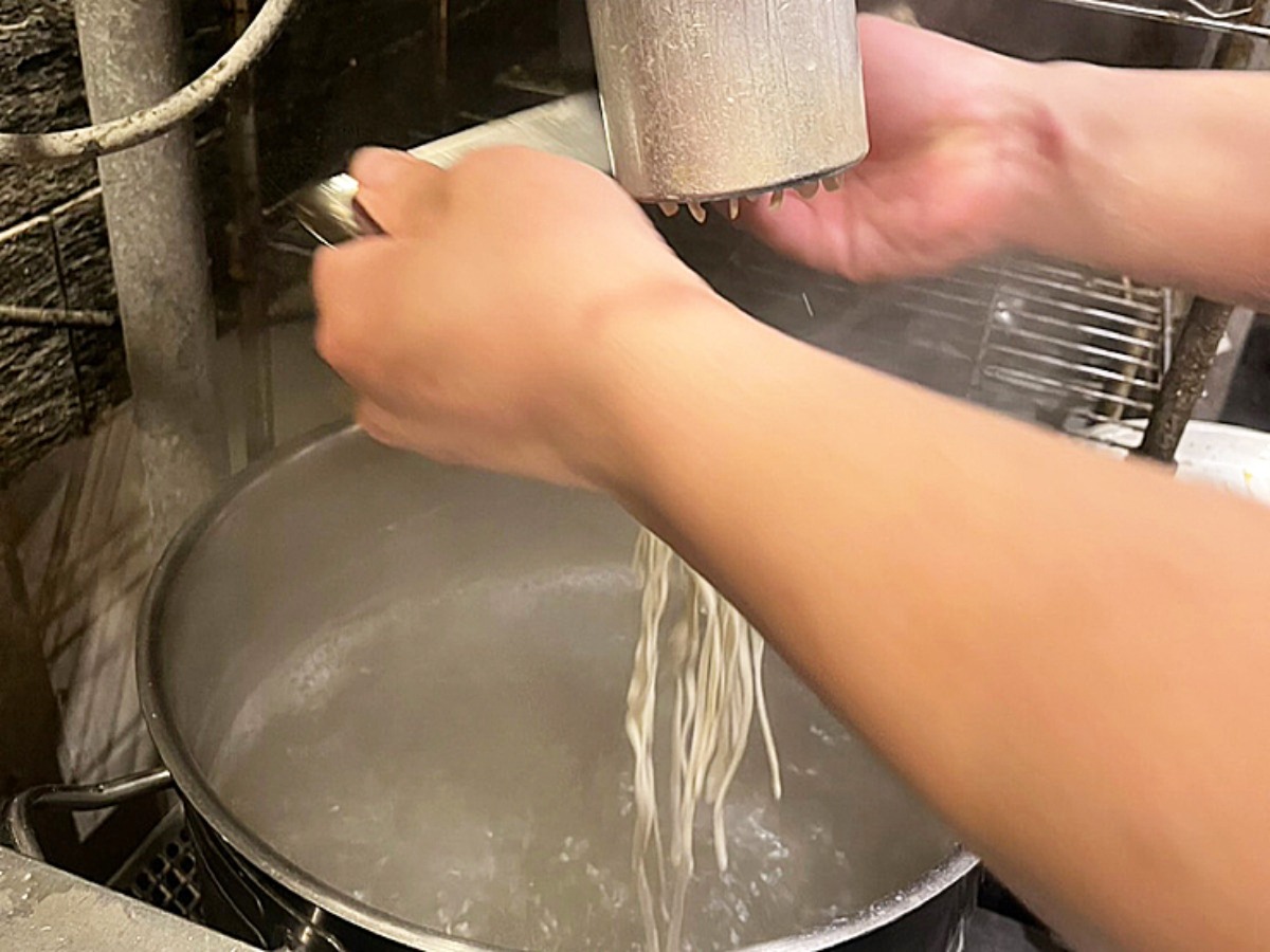そば粉から打ち立ての蕎麦が食べられるのも黑船の魅力。今回は特別に間近で調理風景を撮影させていただきました。