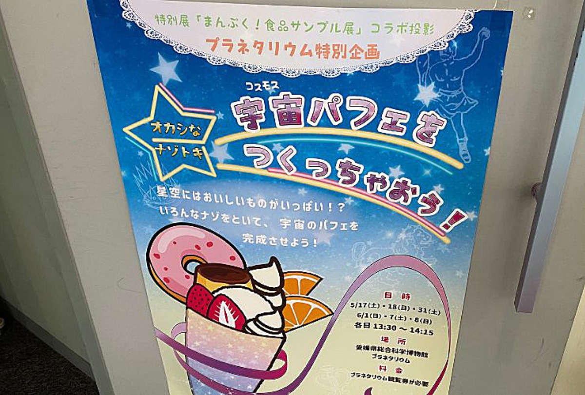 今回は愛媛県総合科学博物館で開催中の「まんぷく!食品サンプル展」と特別展とのコラボで投影されたプラネタリウムを楽しんできたのでレポートします!