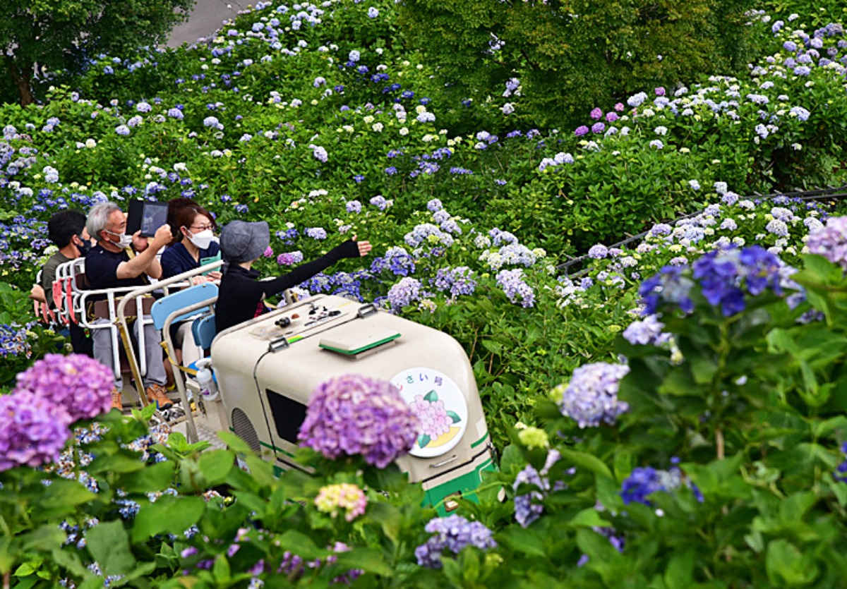 「トゥクトゥク」に乗ってあじさいの遊覧ができるのはこの2日だけ!