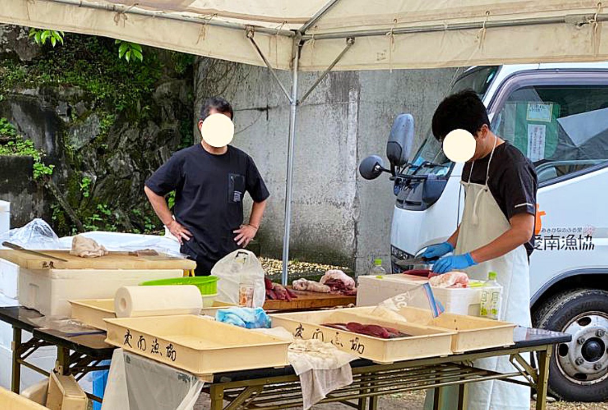 その場で刺身を食べたり、カットされたたたきを食べたり、新鮮なカツオを楽しむ方がたくさんいらっしゃいました。