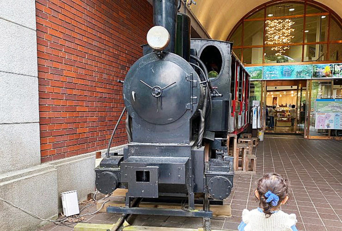 また、マイントピア別子本館の入り口には昔実際に使われていたトロッコ列車が置いてあります。