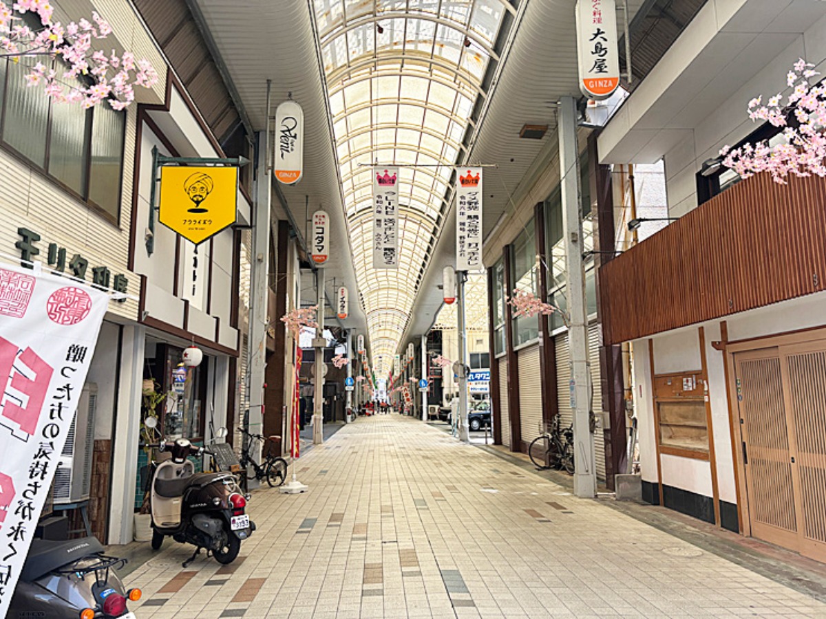 静かな八幡浜の銀座商店街で、一見目を惹く黄色の看板。