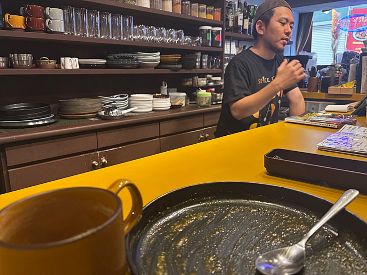 勉強がてら他のカレー屋さんに行くことも多いそうですが、優しい人多いんですと話します。