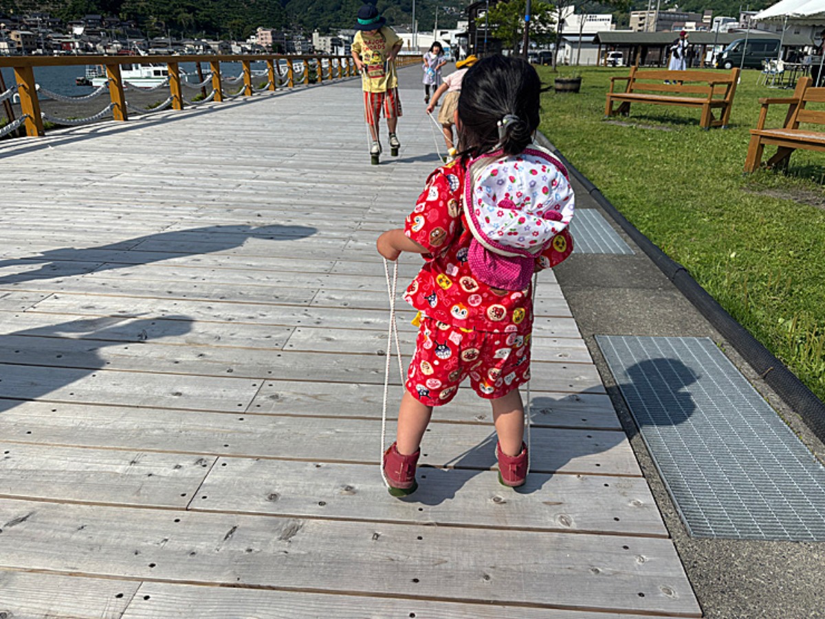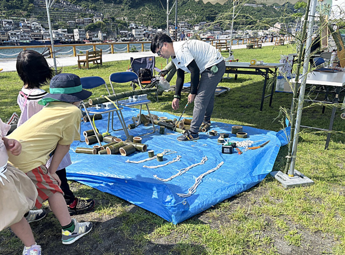 大洲市の地域おこし協力隊のブースでは、今は懐かしい竹ぼっくりのワークショップが行われていました。