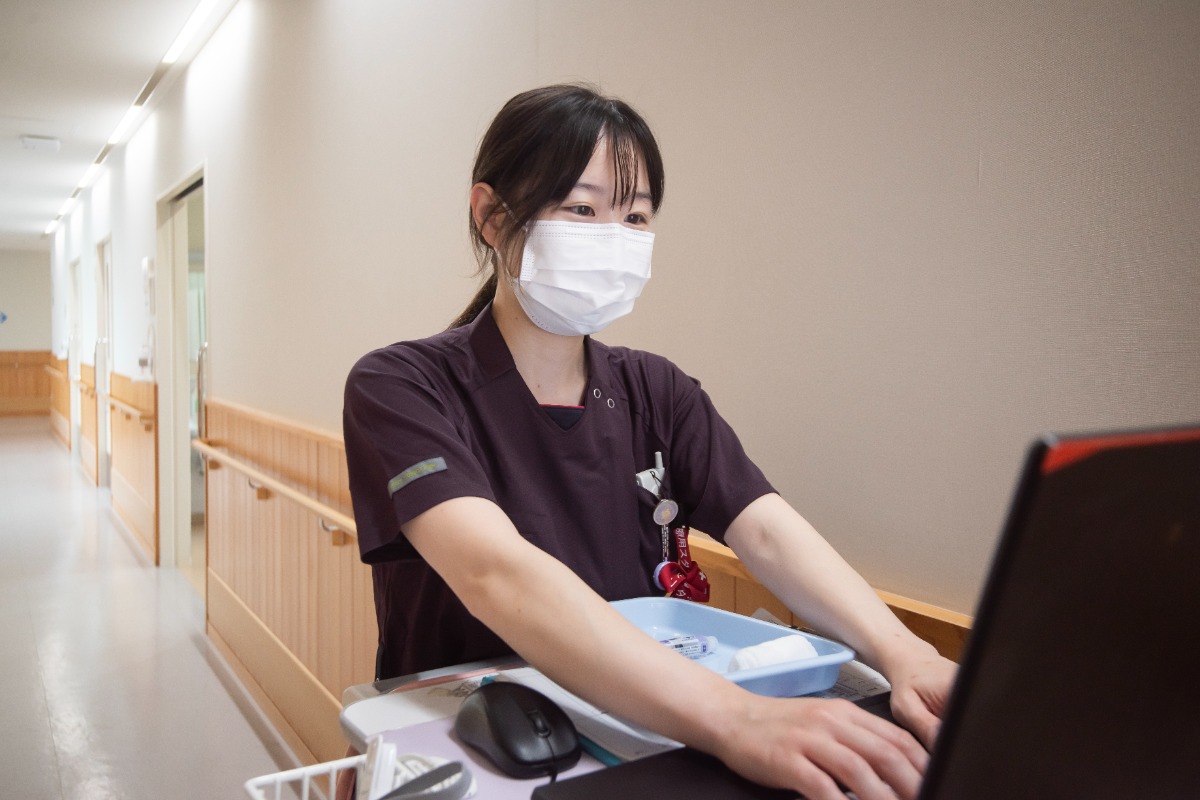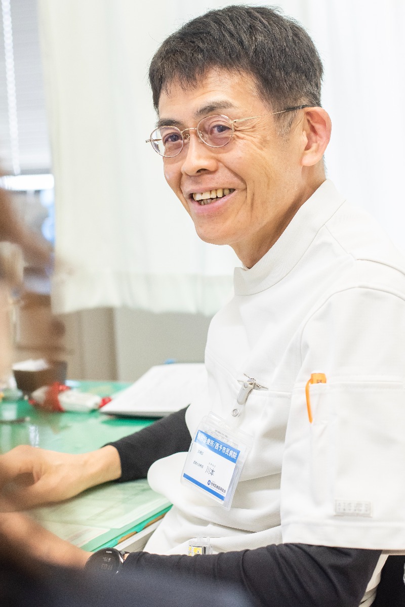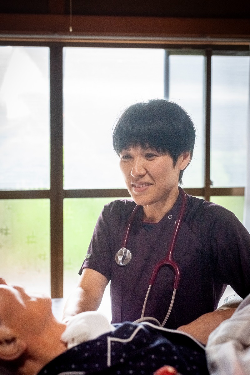 京都などで急性期医療を経験後、地元・野村へUターン。病棟や外来勤務を経て、念願の訪問看護に従事。現在は、地域住民の暮らしを支える在宅看護に力を注いでいる。