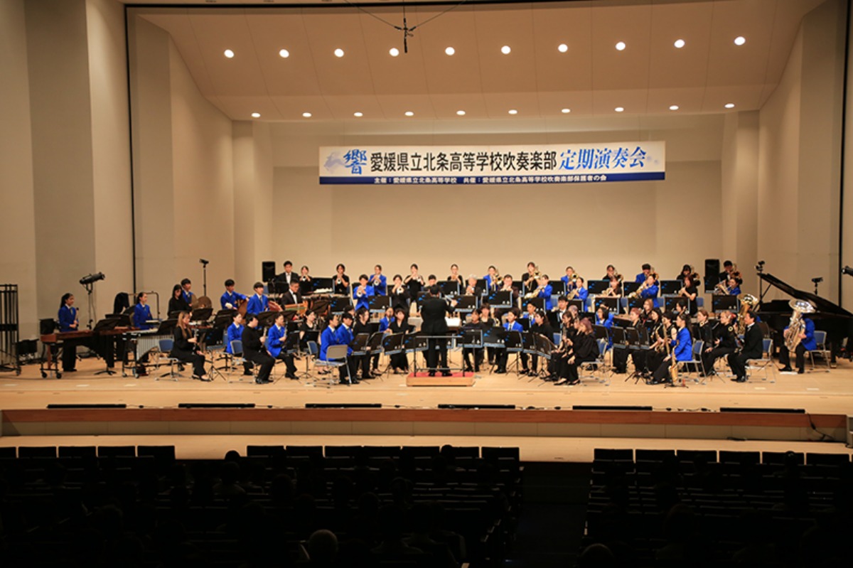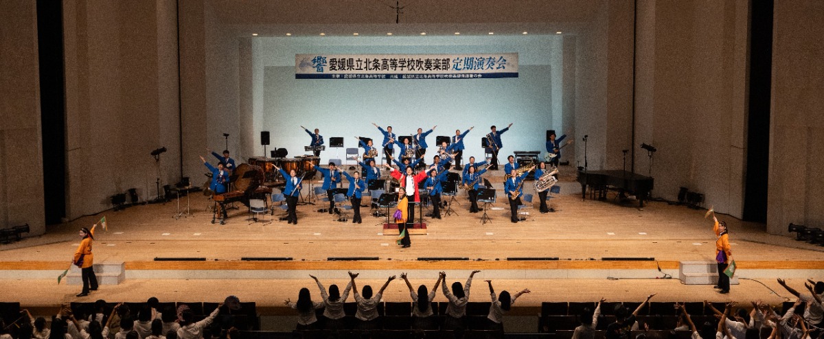 昨年の定期演奏会は25回目の節目として、「あいテレビ」の密着取材を受けるなど、注目が高まる「愛媛県立北条高等学校吹奏楽部」。