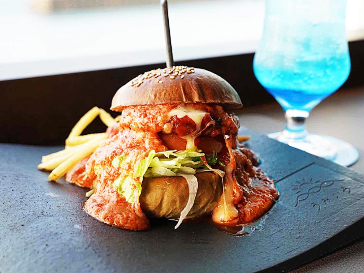 オーナーの夢が詰まったこの場所で、特におすすめなのが「うみいろバーガー」。