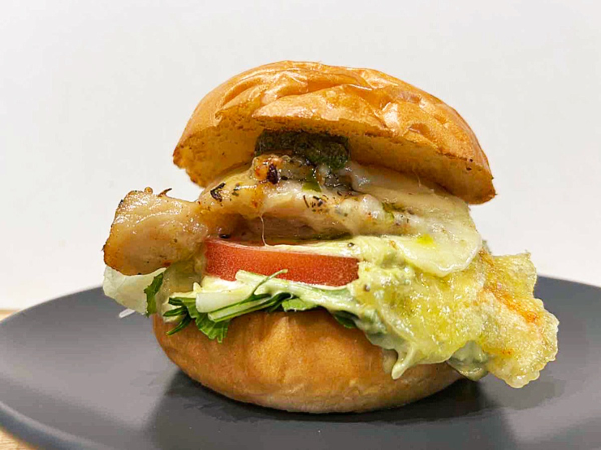 赤はトマトソースにバジルが香る、フレッシュな野菜と流れるチーズが特製バンズとの相性バツグンなバーガー!