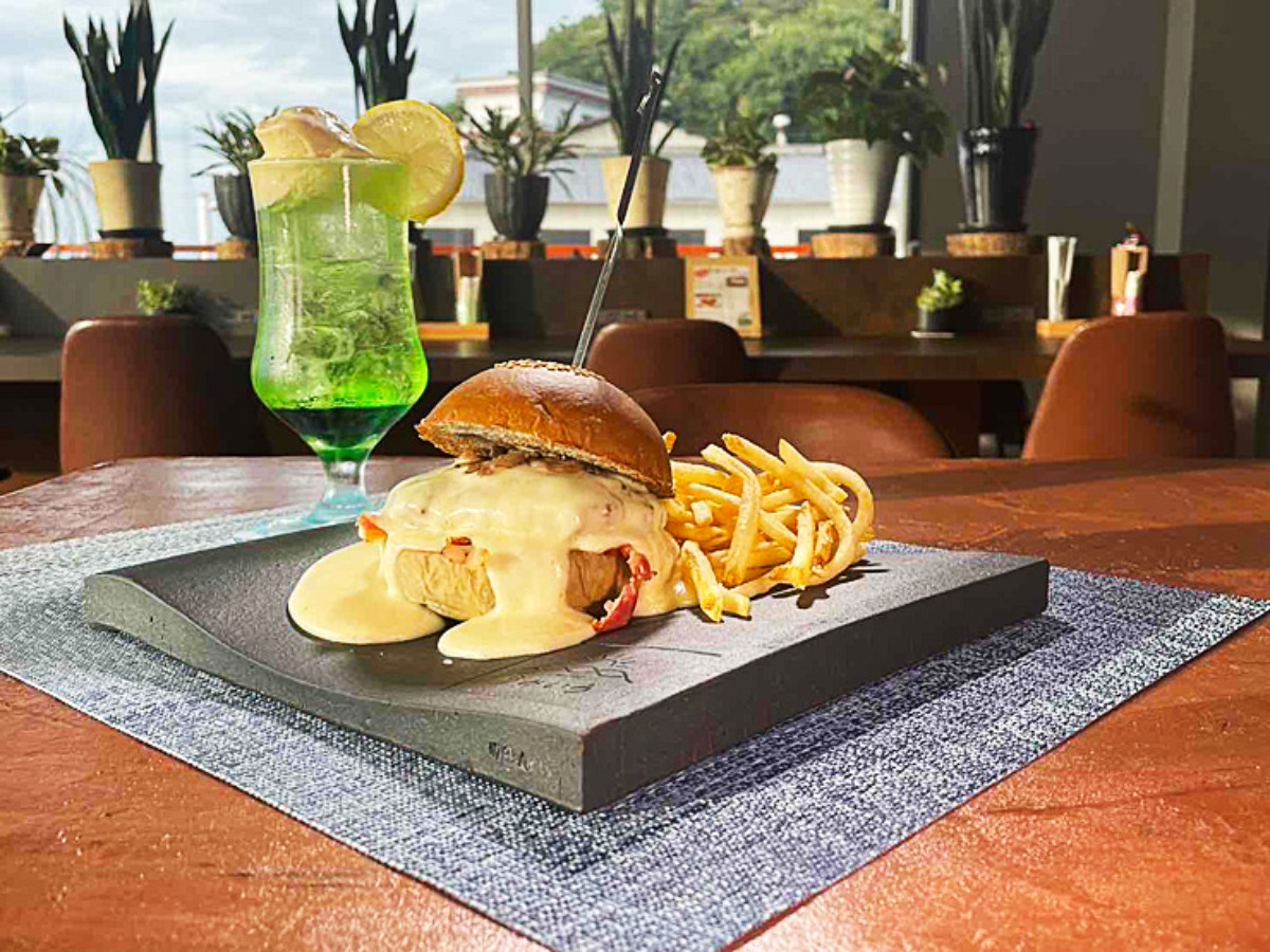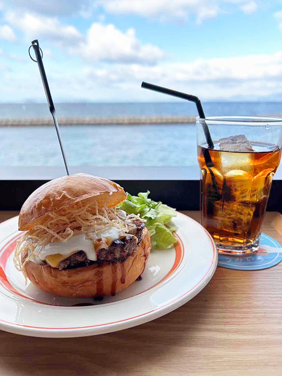 海を眺めながらハンバーガーを味わえば、まるでリゾート地にいるかのような気分に!