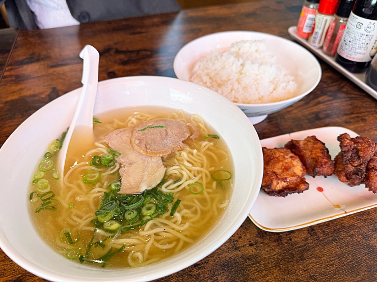ラーメンセット(1,000円)も注目のランチのひとつ。ラーメン・からあげ・白ご飯がセットになったボリューミーなのに、するりと食べられる優しい味が特徴のラーメンです♪