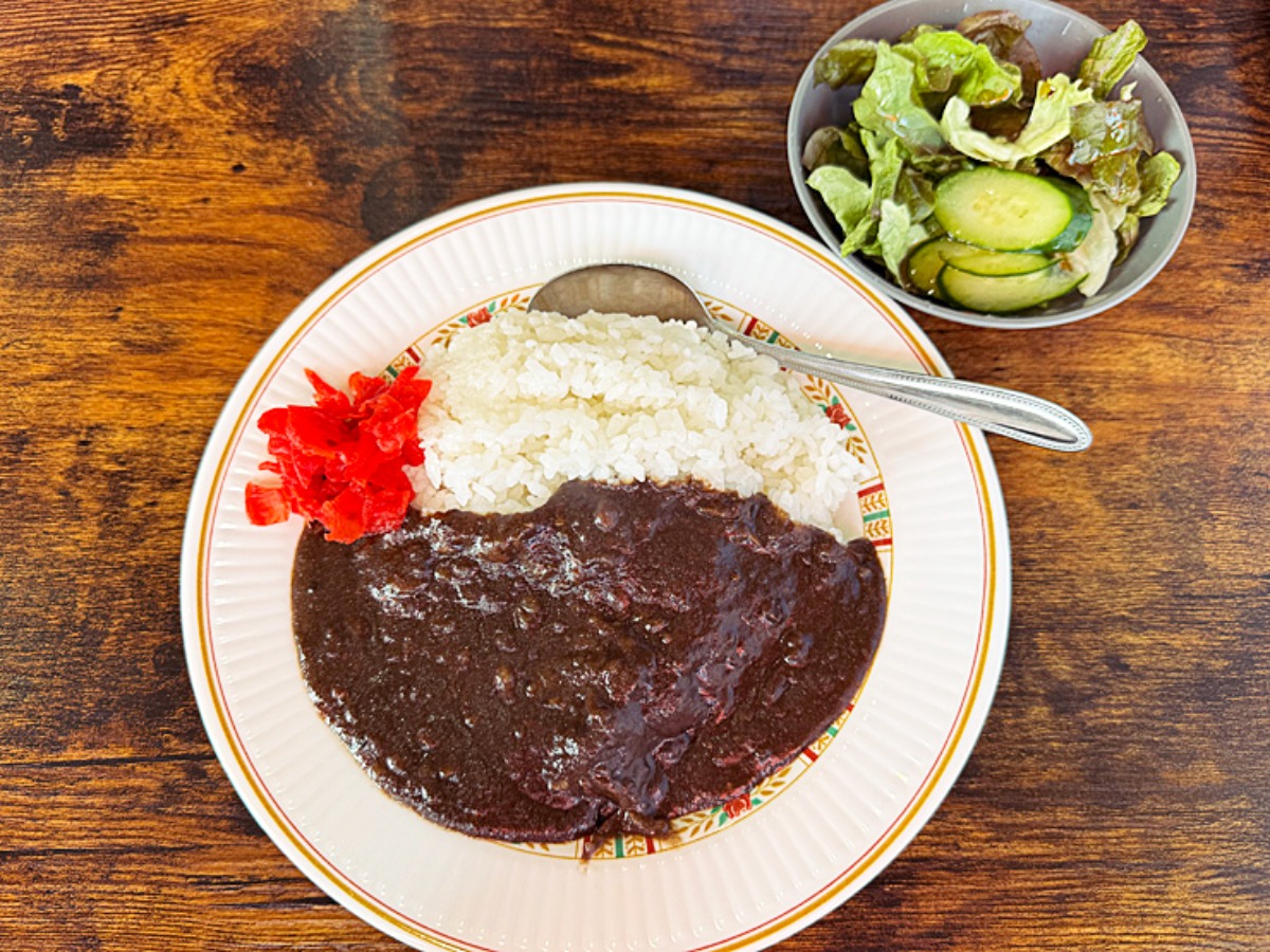今回注文したランチは、もちろん看板にも記載されていた黒カレーを注文。