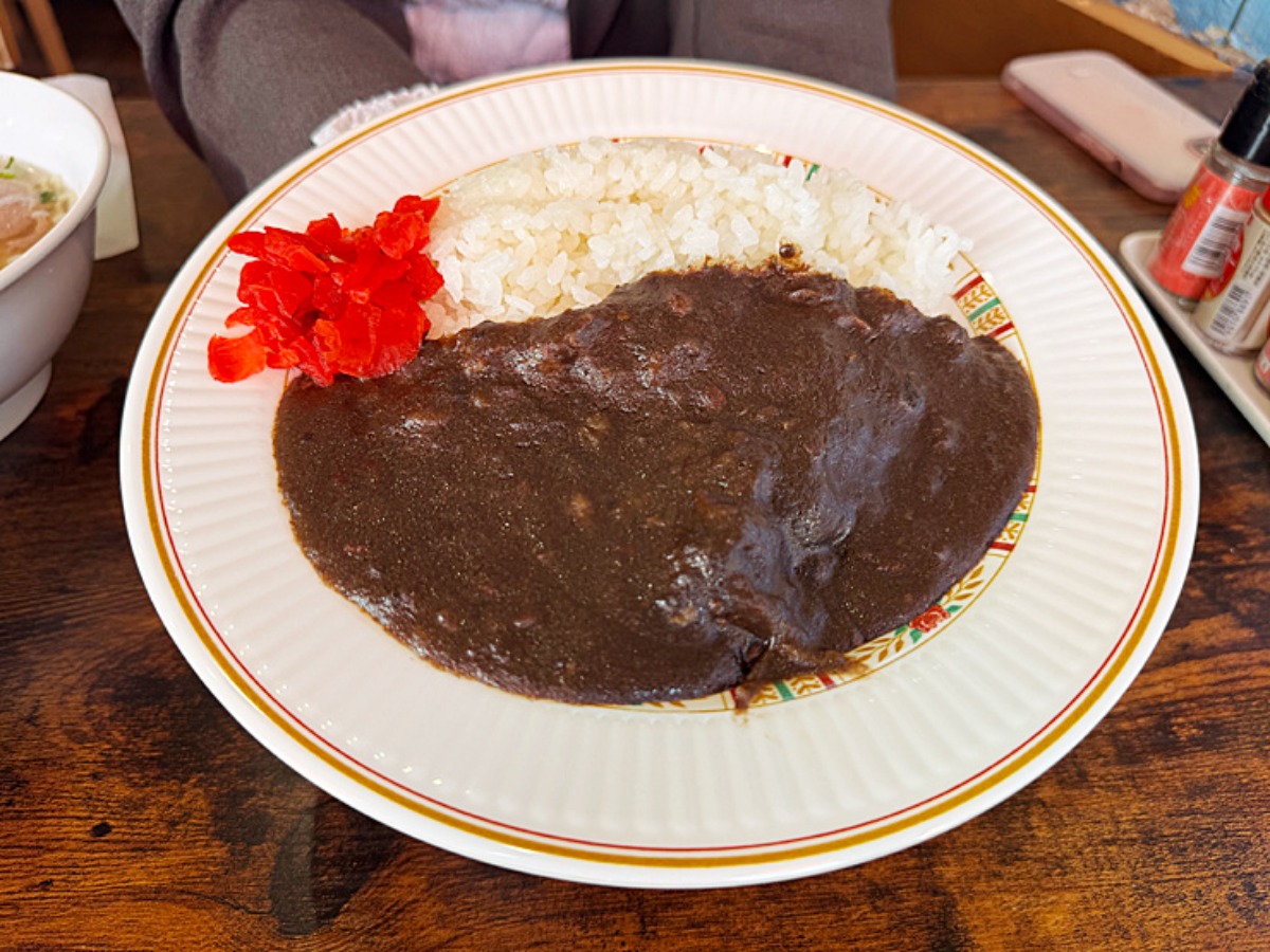 黒カレーは名前通り、ルーが真っ黒!コクと旨味がギュッとこの一皿に凝縮されていました。