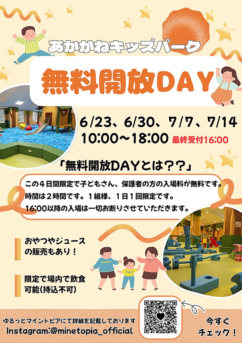 2025年6月23日・30日、7月7日・14日 あかがねキッズパークを無料で楽しめる特別な4日間♪