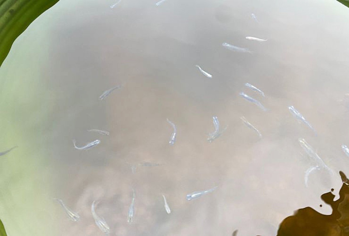 また、お店の外にあるベンチの隣にはきれいな水の中を活き活き泳ぐメダカたちの姿が♪