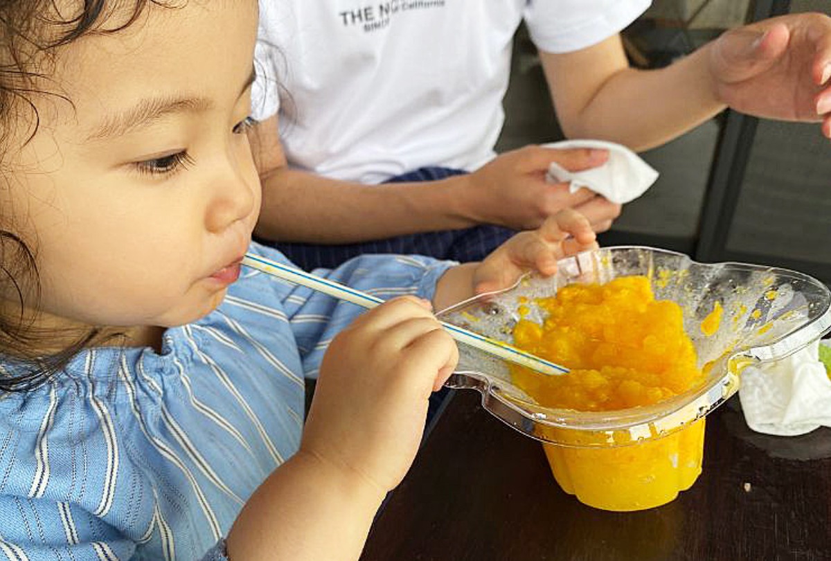 初め、かき氷がどういうものかわかっておらず、だいたい「〇〇食べに行くよ」というと食いつくが、今回はなぜか渋っていた。