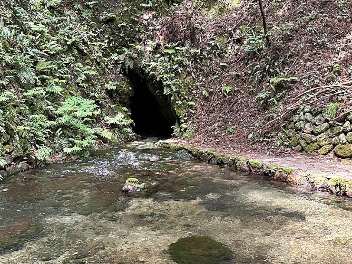 湧出口に近づくにつれて、空気がひんやりと変わり、静寂の中に水の音だけが響きます。