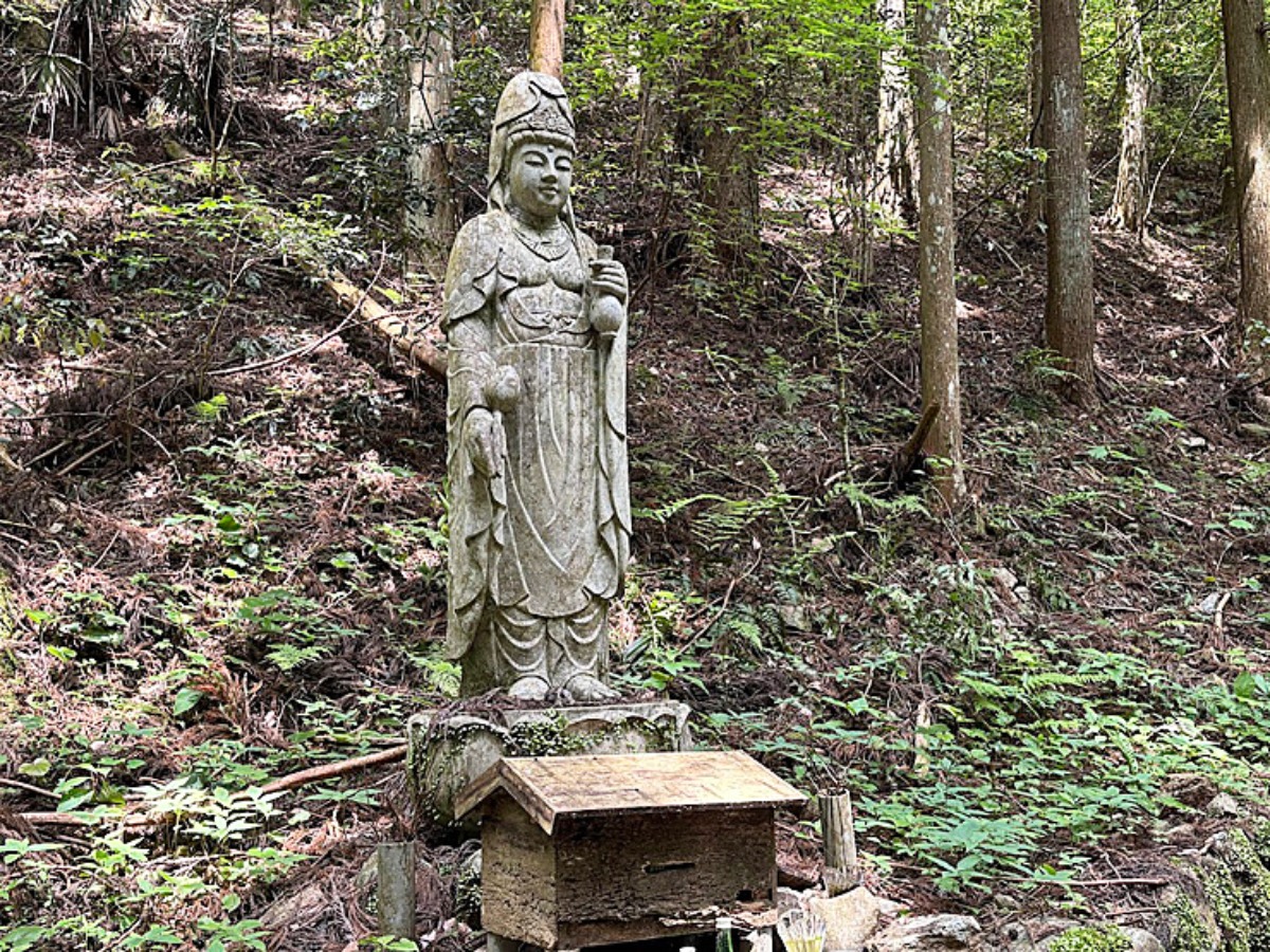 洞窟の前には静かに佇む観音様。昔からこの水を守ってきたのだと思うと、心が温かくなります。