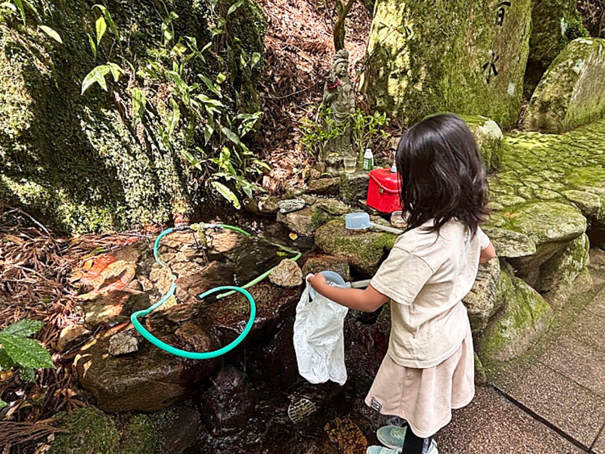 駐車場付近に水汲み場があるので、体力や、時間に余裕がない湧出口まで行けない場合も新鮮な水を気軽に持ち帰ることができます。