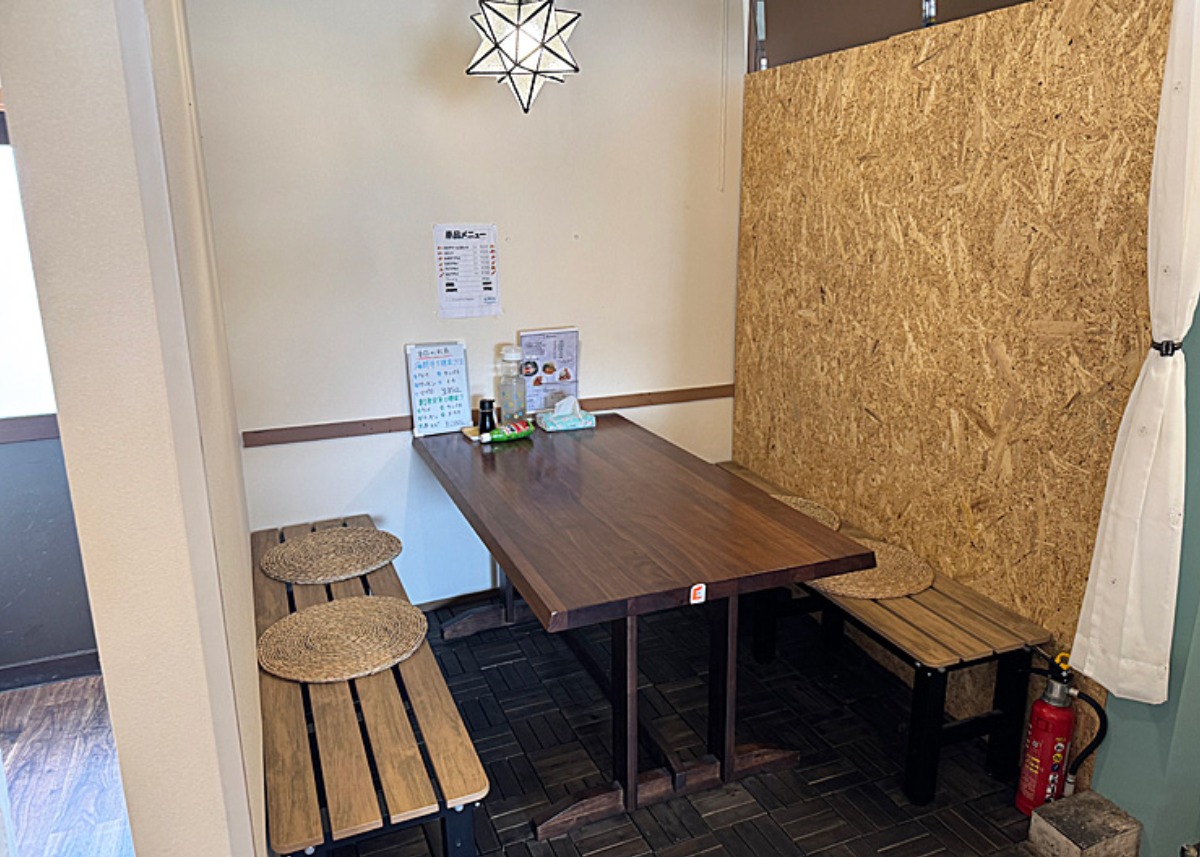 家族で利用できる4人席も1卓ありました。落ち着いた色合いや家具の選び方にもセンスが感じられます。