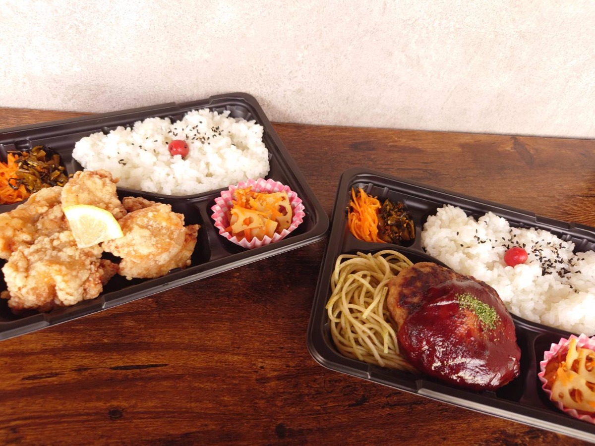 左:唐揚げ弁当(750円)、右:ハンバーグ弁当(800円)