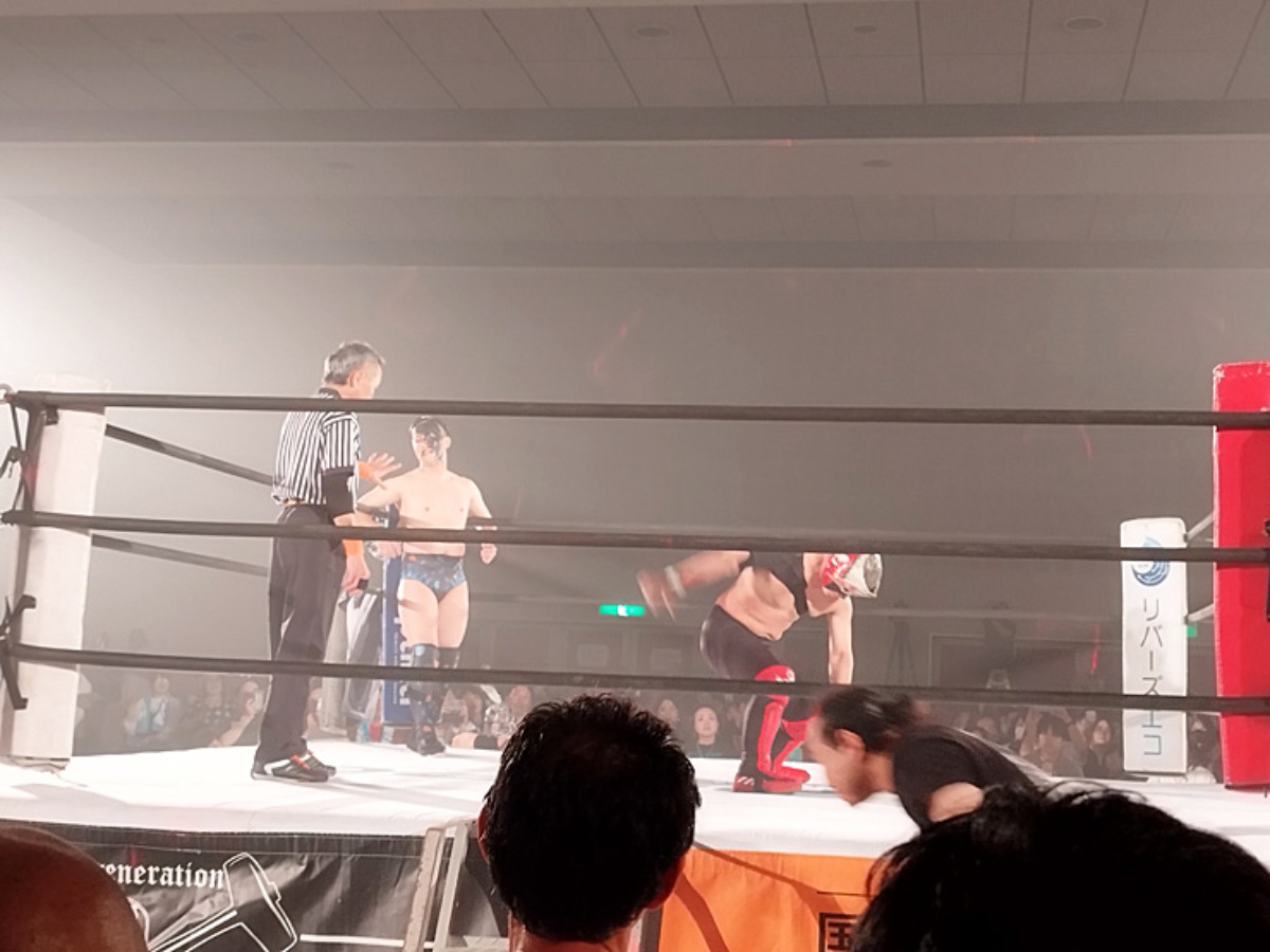 第4試合では2023年12月に愛媛プロレスを卒業したしゃあ選手改め豊田紗也夏選手が凱旋。今治市出身、「瀬戸内のジャンヌダルク」鶴姫花選手との一騎打ちが実現しました。