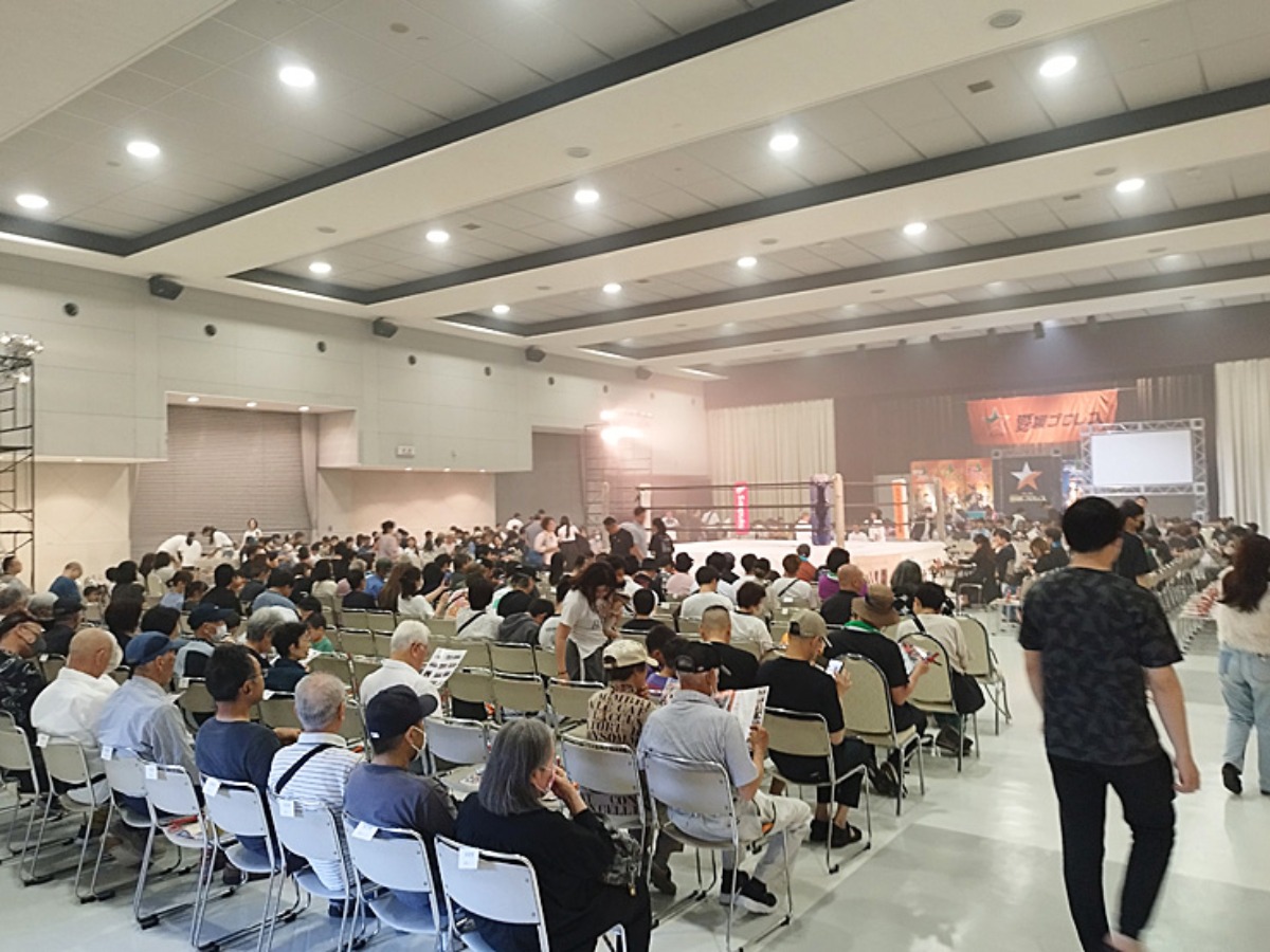 遂に会場に到着すると、場内は700名を超える観客で早くも独特の熱気を放っていました。これまでのビッグマッチの中でも最も大きな会場で、どのくらいの集客があるのか気になっていたところではありますが、蓋を開けてみるとこれだけ多くの人が訪れているという事実に改めて愛媛プロレスの人気の高さを感じました。